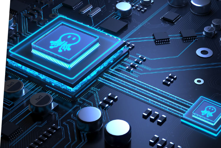 The machine uses a stepper motor that controls the stitch length setting and the bartacking function. The Octopus Dual-Core AI chip is an improved intelligent solution that automatically adjusts machine parameters in real time to the thickness of the material being sewn.