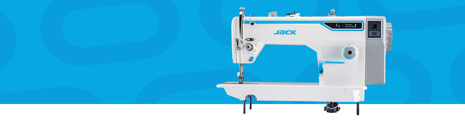 Stebnówka 1-igłowa ze zintegrowanym w głowicy silnikiem servo (Direct Drive), transport ząbkowy, zintegrowane oświetlenie energooszczędne LED z regulacją natężenia światła. Posiada regulację prędkości szycia. Stebnówka JACK F6 przeznaczona jest do szycia materiałów lekkich i średnich, dostępna również podklasa H do szycia materiałów ciężkich.